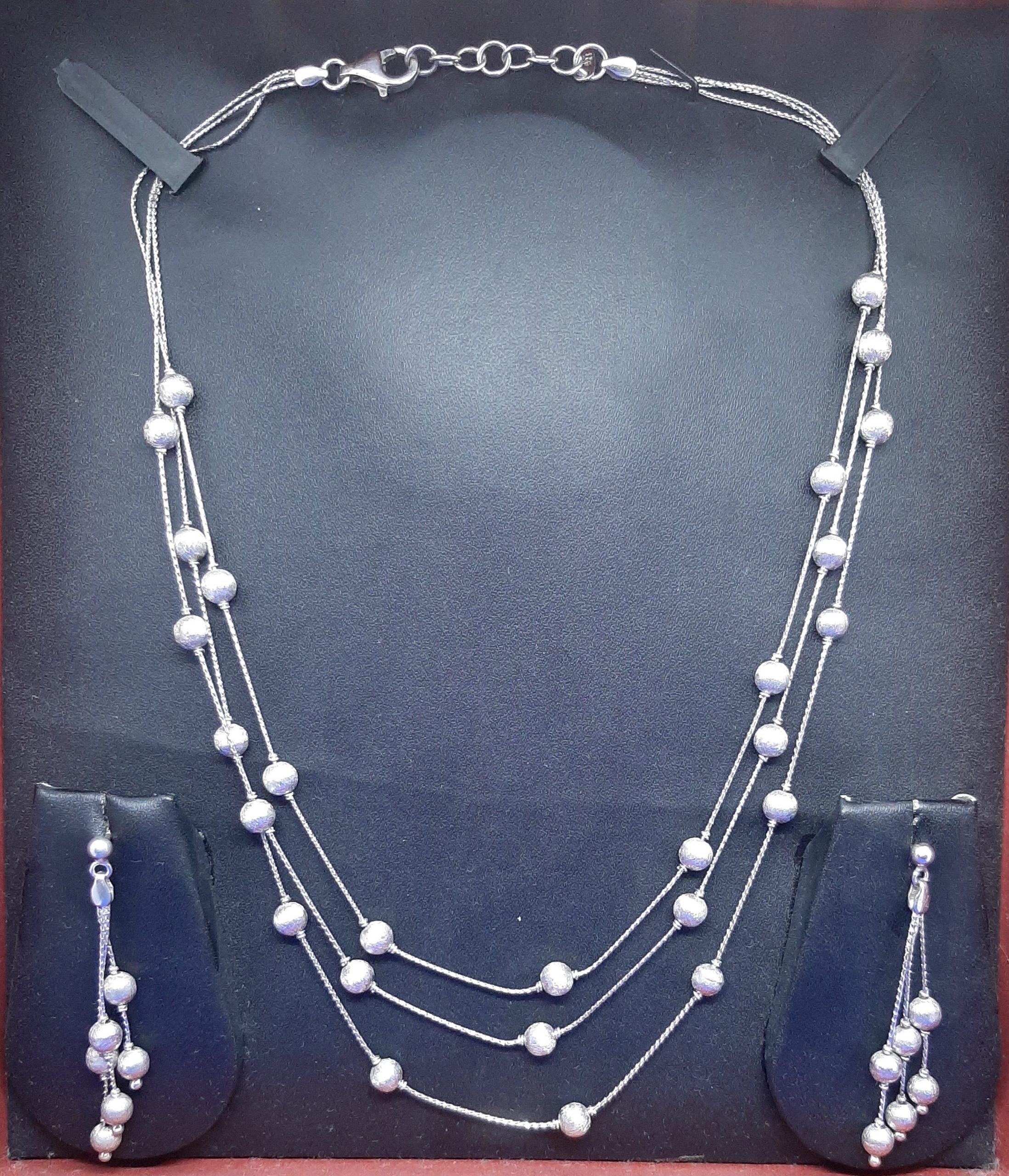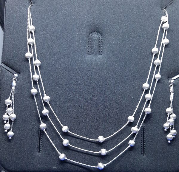 Veer Jewels Brings to you this super elegant and comfortable Sterling silver Necklace & Ear rings.You are sure to have a nice look with this Necklace & Earrings. It is neither too heavy nor very thin. Weight of the chain is perfectly chosen to give a sleek look yet uncompromised on durability. Our special E-coating prevents it from getting Tarnished easily. If carefully handled it will be remain new for a very long time This is also a perfect gift for your loved ones. Very beautfiul box packing will be provided with this Necklace & Earrings.